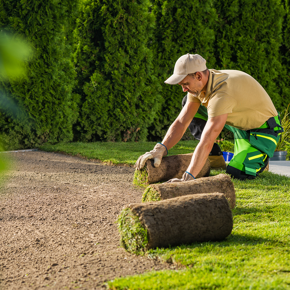 Some customers opt to sod the front yard and seed the backyard to manage costs. Sodding also works well on hills and sloped areas where erosion can be a problem when trying to establish seed. Sod staples can help prevent sod from sliding down slopes.